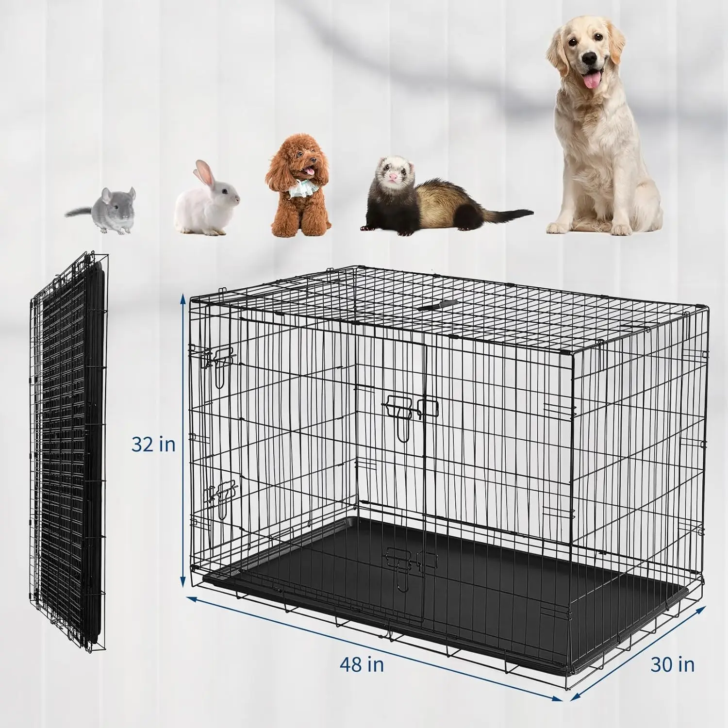 24/48 Inch Rabbit Cage Portable Folding Small Crate Rabbit Carriers with Slide Out Tray & 2 Door for Bunny Ferret Chinchilla Rat