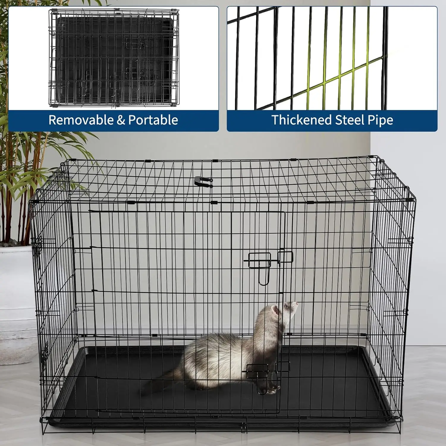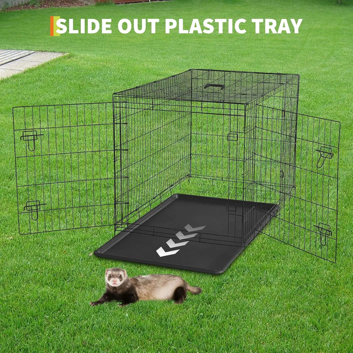 【Easy-Clean Design with Removable Bottom Tray】Cleaning is simplified with a full-width pull-out tray that slides smoothly from under the cage. This setup helps you maintain a hygienic small animal cage by making waste removal quick and straightforward, reducing overall maintenance time for busy pet owners.