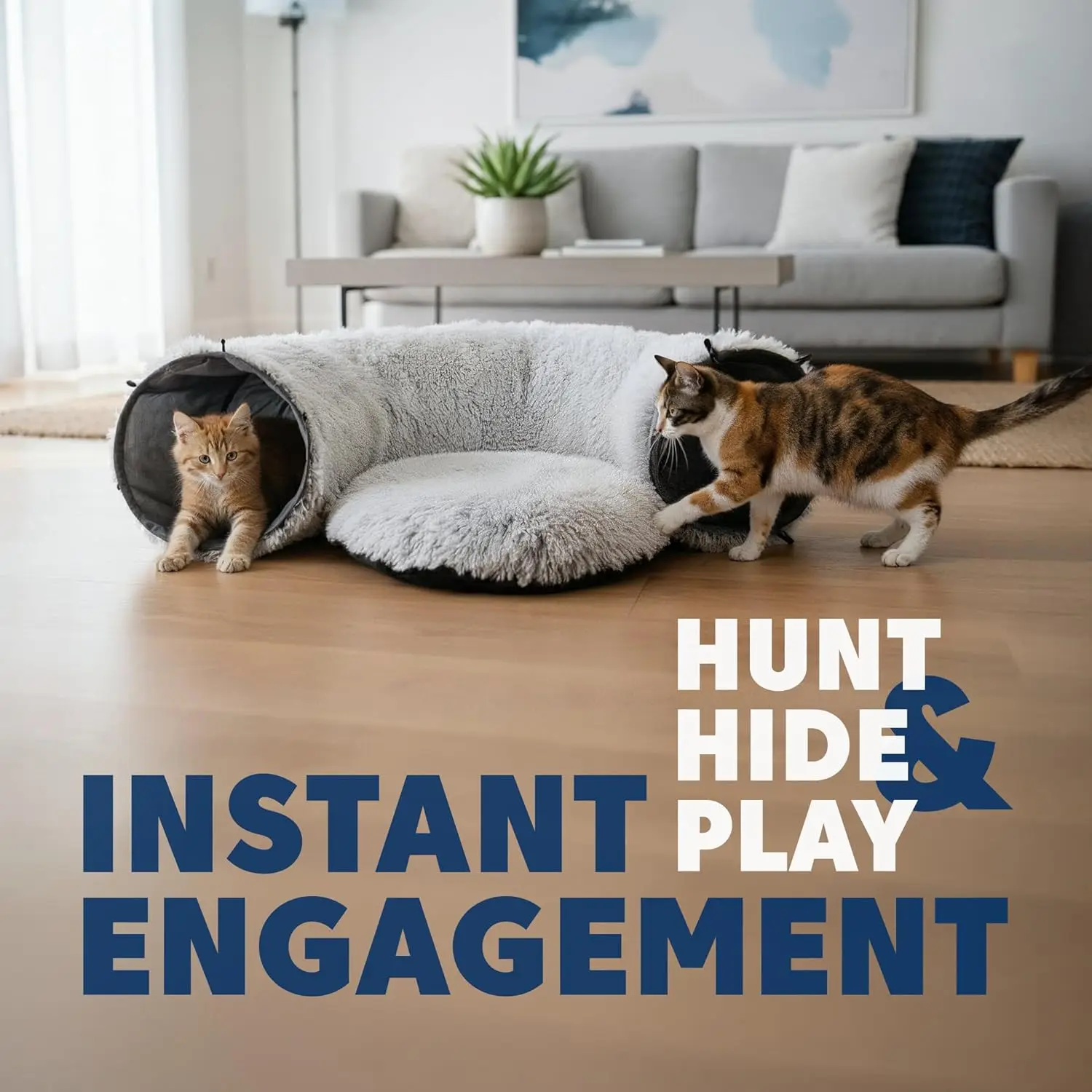 Quick-Fold Storage: cat tube bed collapses flat in seconds and slips into closet or travel bag. Portable cat hideaway stays fluffy yet light, and cat hideout pops open to a furry cave anywhere indoor